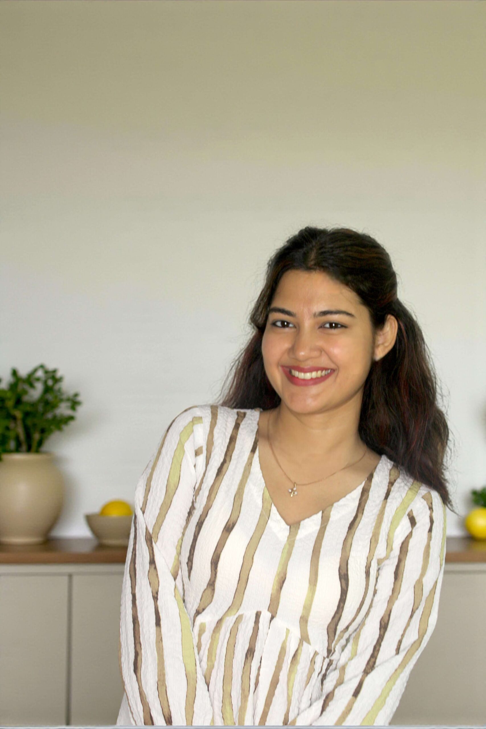 White popcorn cotton coord set with earthy vertical stripes—textured, minimal, and modern.