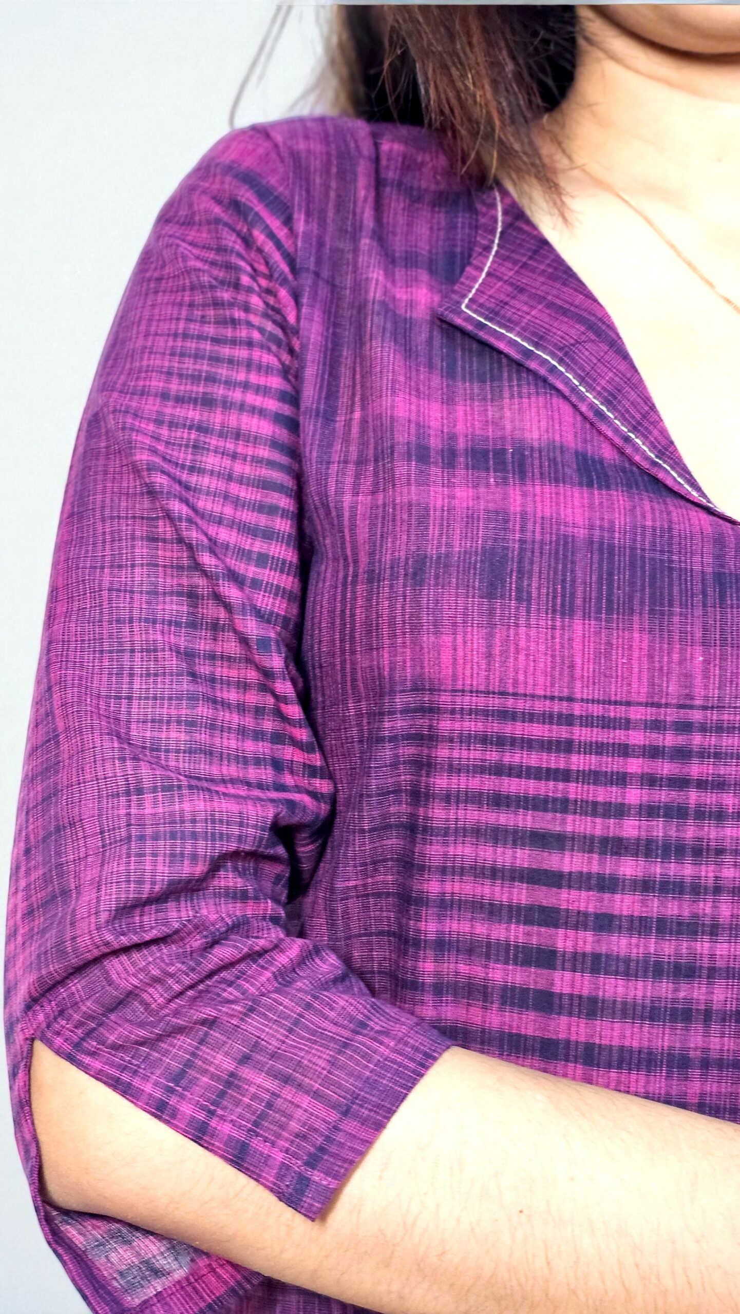 Tavisha – Elegant plum purple khadi cotton kurta with a semi-transparent texture and soft sheen, perfect for a breezy, graceful look.